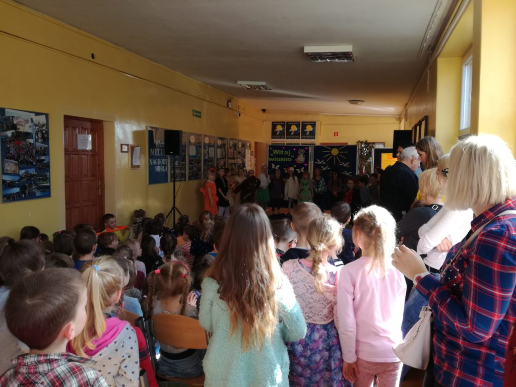W pogodzie i kalendarzu już odliczamy dni do lata, a tymczasem warto przypomnieć sobie, co działo się wiosną w grupie Rekinów. Prócz tradycyjnego powitania wiosny podczas spaceru z Marzanną, zostaliśmy zaproszeni wraz z Fokami i Delfinami do Szkoły Podstawowej nr 51 na teatrzyk w wykonaniu dzieci, uczniów klasy 1. Bardzo nam się podobało, stąd owacje na stojąco! A w dodatku rozpoznaliśmy kolegów i koleżanki, którzy jeszcze tak niedawno bawili się z nami w przedszkolu!