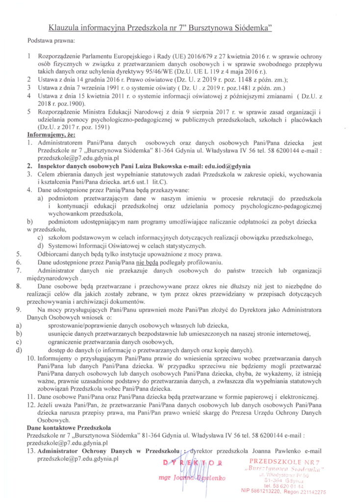 o zapoznanie się z klauzulą informacyjną.