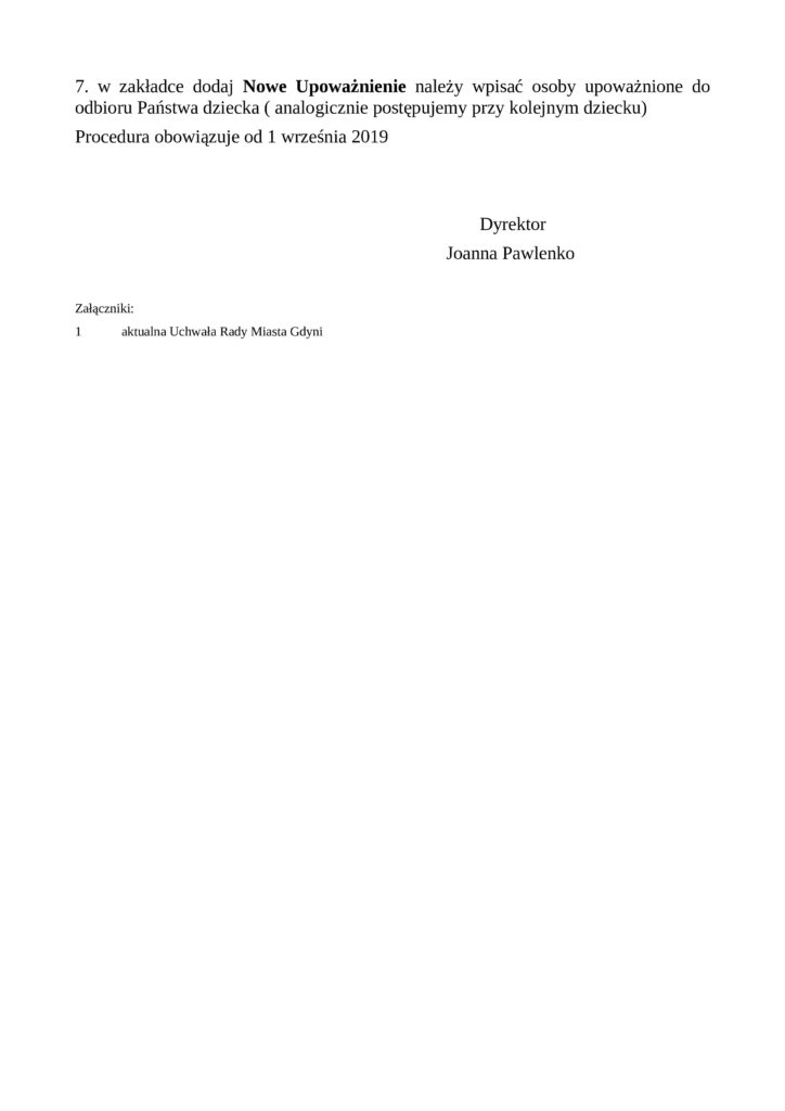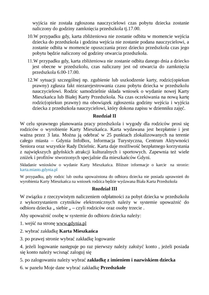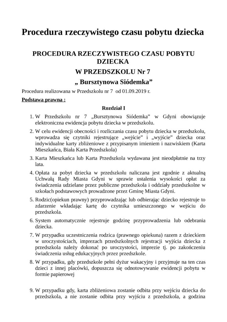 Poniżej zostaje udostępniona dla Państwa procedura rzeczywistego pobytu dziecka w przedszkolu oraz uchwała Rady Miasta, która jest załącznikiem do procedury pobytu dziecka w placówce.