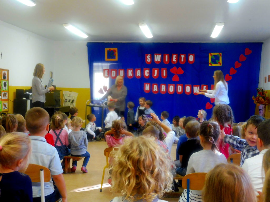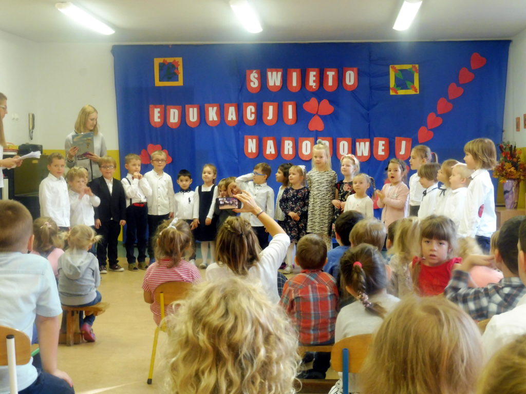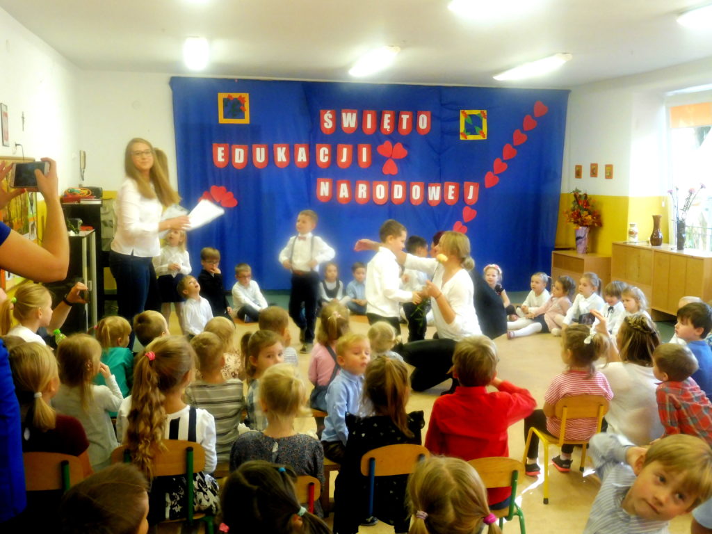 Dzień Edukacji Narodowej, to nie tylko święto Nauczycieli, ale również wszystkich pracowników placówki oraz dzieci. Z tej okazji 14 października odbyła się w naszym Przedszkolu uroczysta Akademia. Reprezentacji każdej z grup,pod wodzą nauczycielek grupy „Delfiny” – p. Eweliny i p. Alicji, przedstawili program muzyczno-artystyczny. Spotkanie zakończyło się wspólnym śpiewaniem piosenki oraz wręczeniem przez dzieci kwiatów dla wszystkich pracowników Przedszkola. Wywołało to niejedną łzę w oczach. W salach czekał na dzieci słodki poczęstunek. 🙂