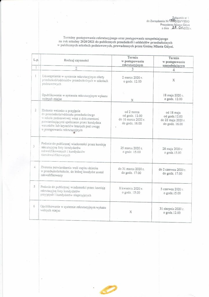 Rekrutacja do Przedszkola na rok szkolny 2020/2021